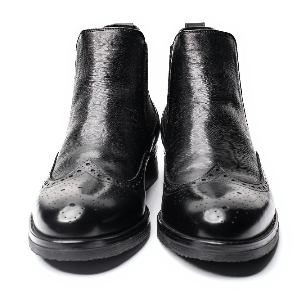 Челсі "Амстердам" від TANNER - це челсі з брогуванням, зшиті з гладкої шкіри. Чудовий вибір для тих, хто шукає черевики, які поєднуються як з діловими костюмами, так і з різноманітними брюками, а також джинсами. Неформальні костюми, зрозуміло, з цією моделлю теж можуть вдало гармоніювати. Спектр допустимих кольорів включає в себе синій, сірий, чорний і деякі менш ординарні варіанти типу темно-бордового.